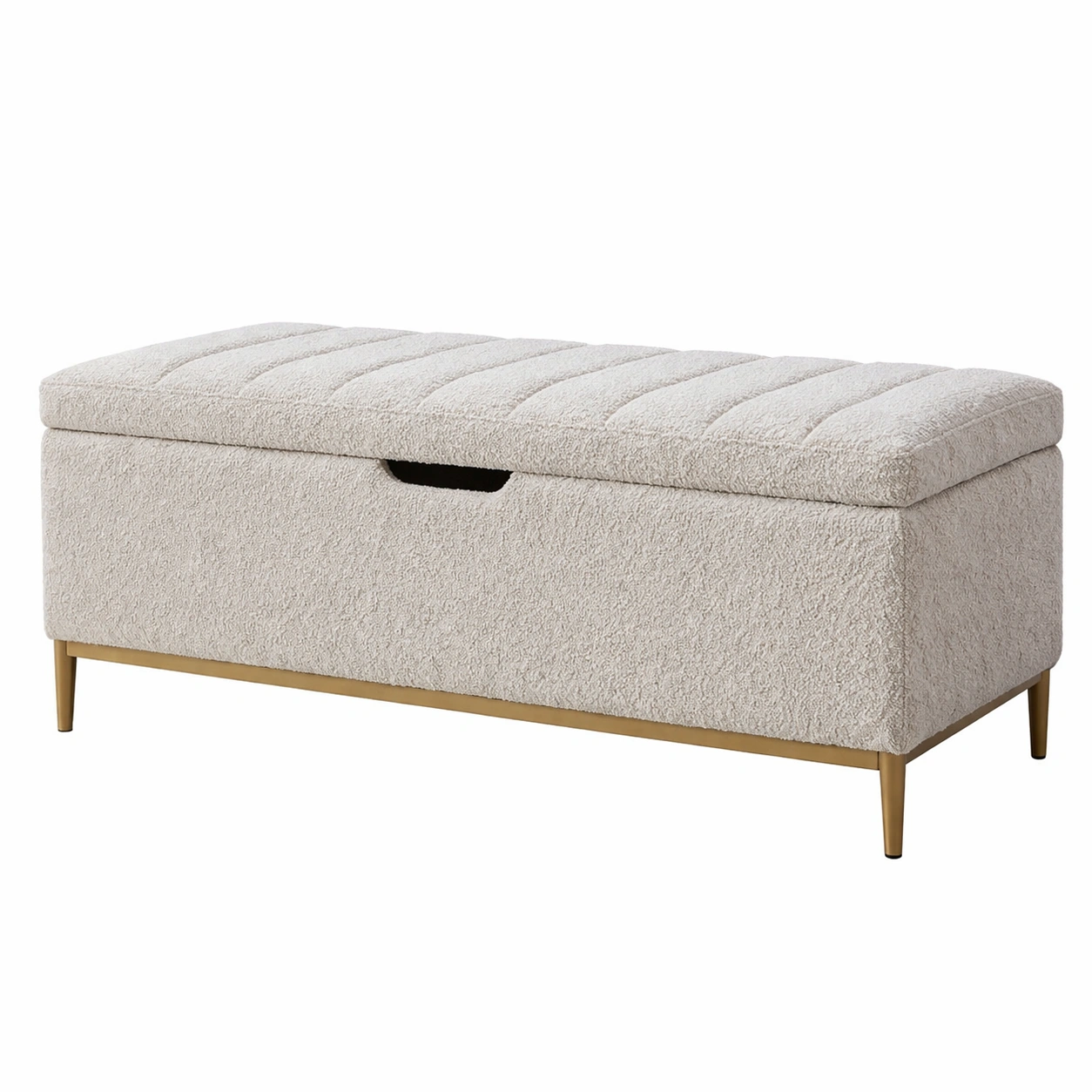 Banco con almacenamiento de tela de bouclé beige